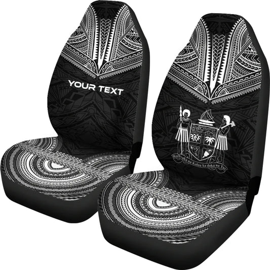 Fiji Custom Personalised Car Seat Cover - Fiji Coat Of Arms Polynesian Chief Tattoo Black Version