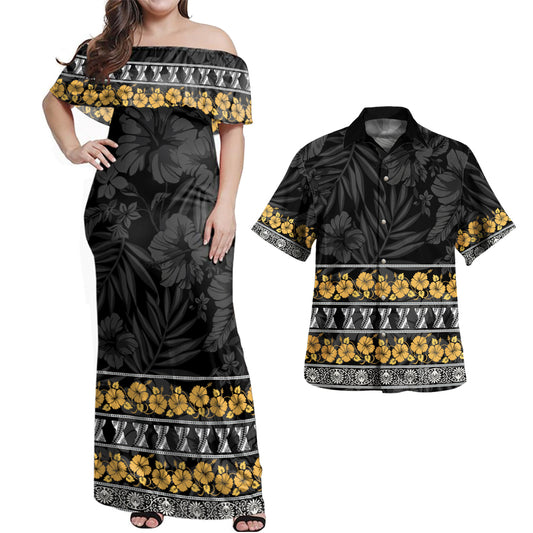 Guam Combo Dress And Shirt - Polynesian Tentacle Tribal Pattern Gold