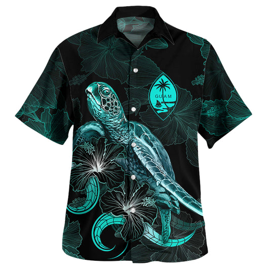 Guam Combo Dress And Shirt - Guam Coat Of Arms With Polynesian Turtle Blooming Hibiscus Turquoise