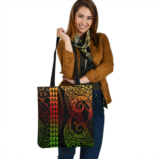 Hawaii Tote Bag Polynesian Turtle Tropical Gardient Green