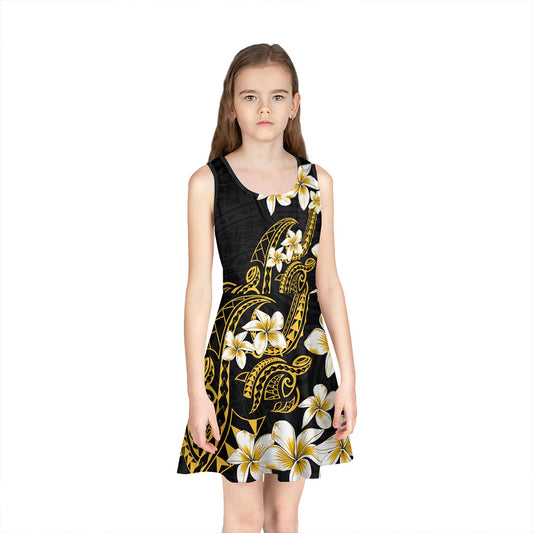 Hawaii Girls Sleeveless Sundress Polynesian Tribal Tattoo Plumeria Flower