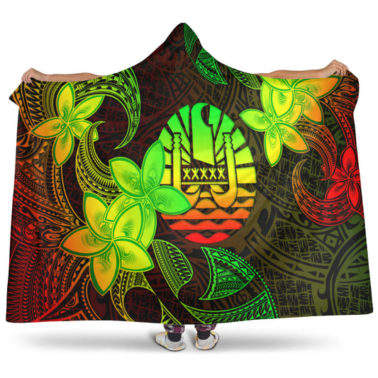 Tahiti Hooded Blanket Plumeria Flowers Vintage Style Reggae Colors