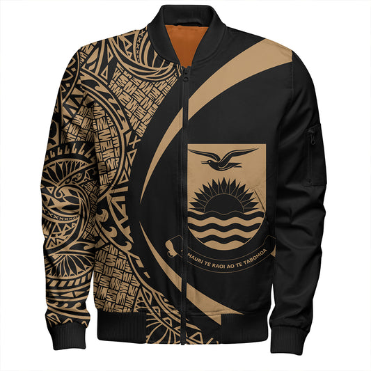 Kiribati Bomber Jacket Coat Of Arm Lauhala Gold Circle