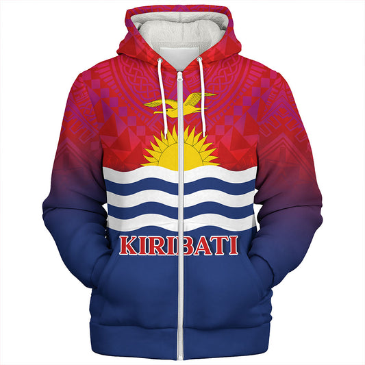 Kiribati Sherpa Hoodie Flag Color With Traditional Patterns