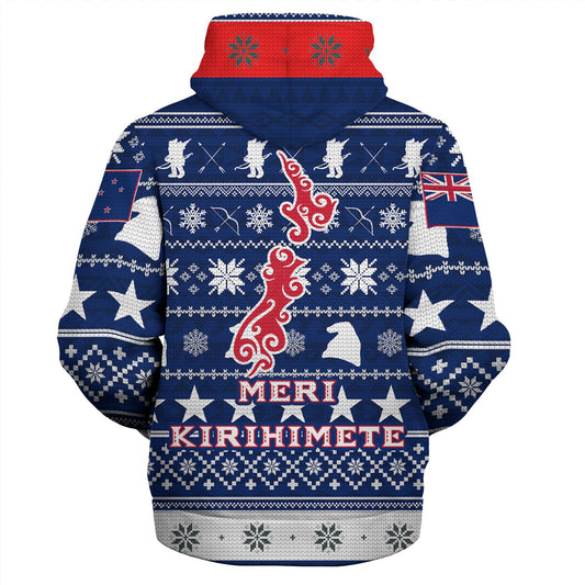 New Zealand Sherpa Hoodie Santa Riding Kiwi Bird Meri Kirihimete Ugly Christmas Maori Patterns