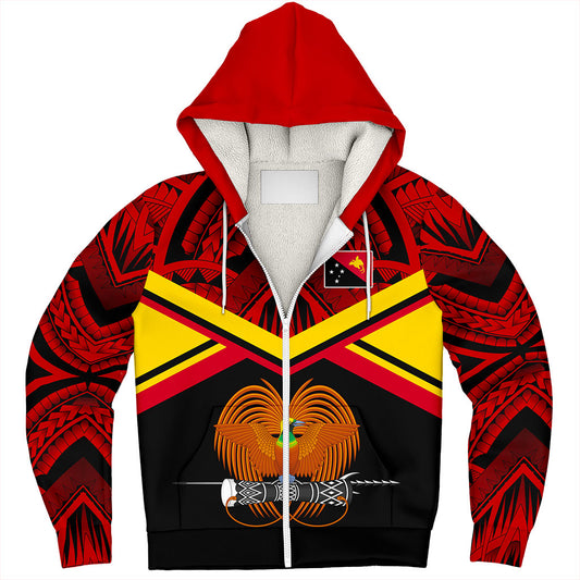 Papua New Guinea Sherpa Hoodie Polynesian Tattoo Flag And Coat Of Arms