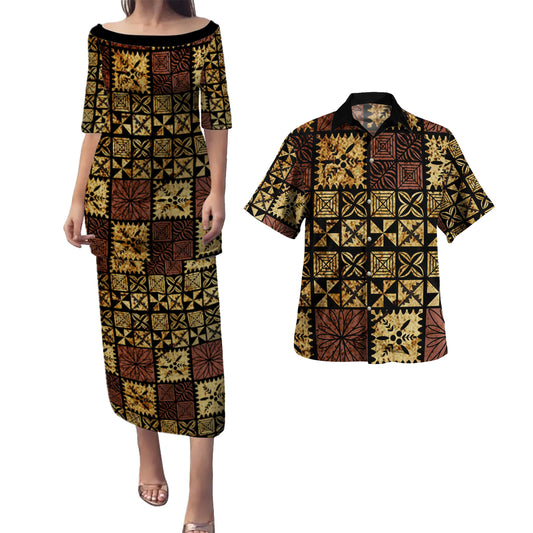 Tonga Combo Puletasi And Shirt Ngatu Tapa Pattern