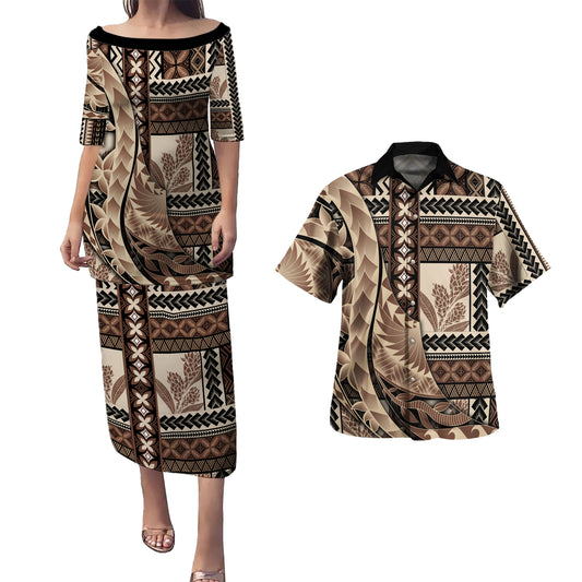 Samoa Combo Puletasi And Shirt Siapo With Polynesia Pattern