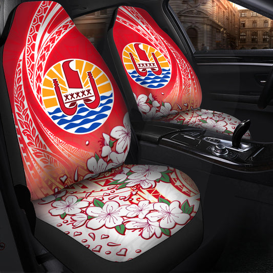 Tahiti Car Seat Covers Polynesian Pattern Style White Flowers