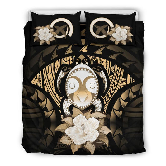 Vanuatu Duvet Cover Set - Turtle Tiki Face & Gold Hibiscus