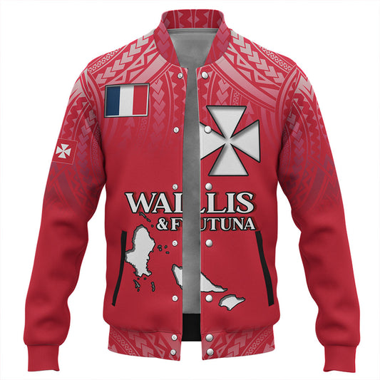 Wallis And Futuna Baseball Jacket Flag Color With Traditional Patterns