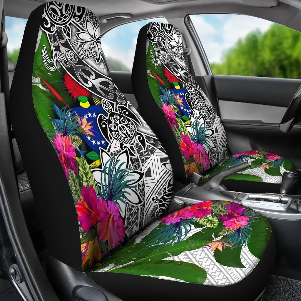 Cook Islands Custom Personalised Car Seat Covers White - Turtle Plumeria Banana Leaf