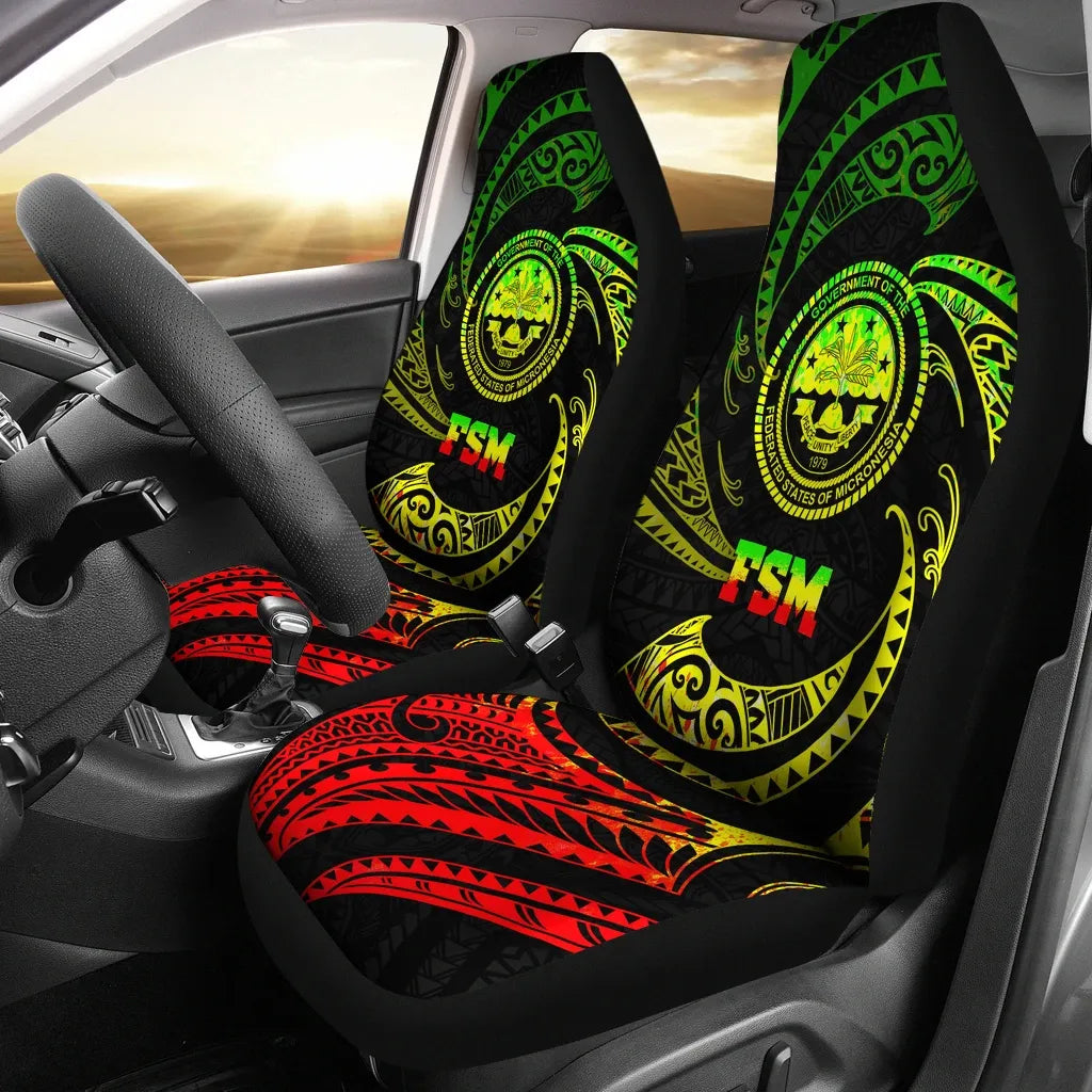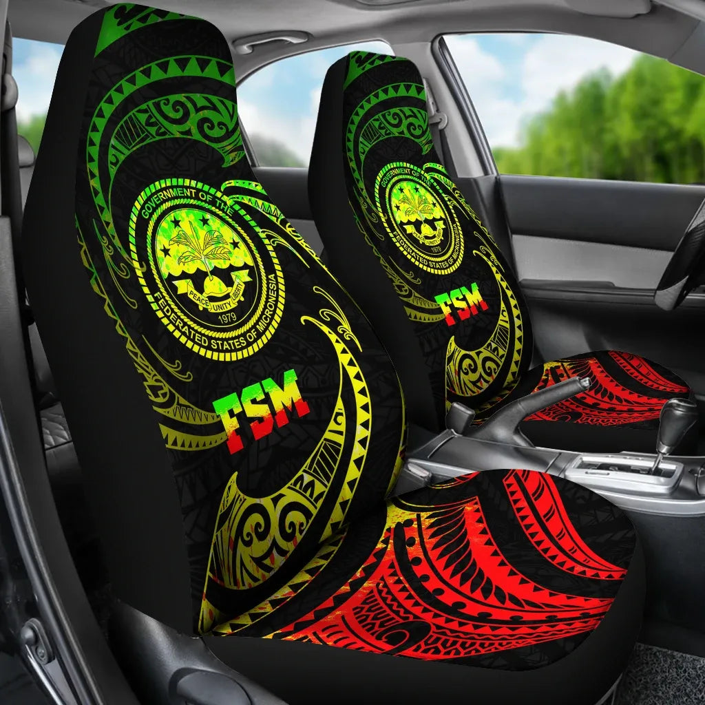 Federated States of Micronesia Car Seat Covers - White Tribal Wave