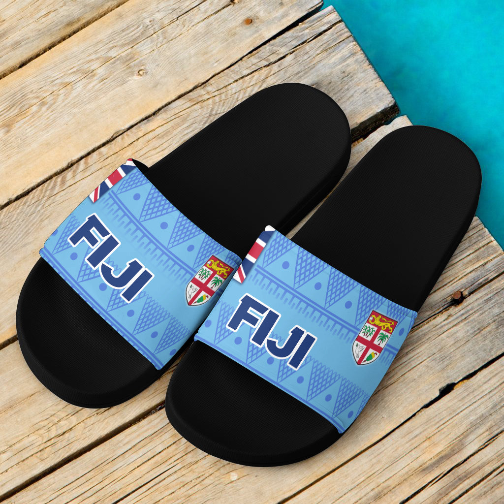 Fiji Flag Color With Traditional Patterns Slide Sandals