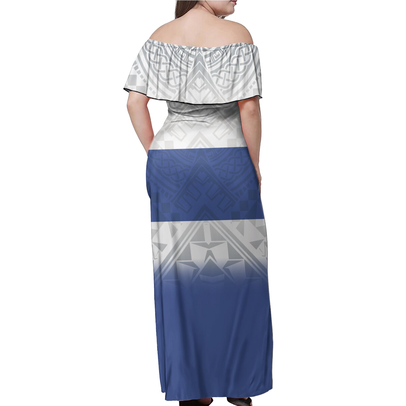 Gambier Islands Flag Color With Traditional Patterns Women Off Shoulder Long Dress