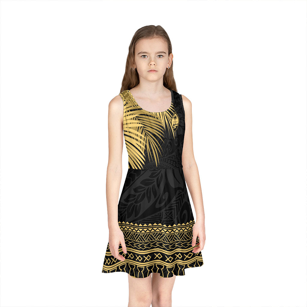Guam Girls Sleeveless Sundress Fabric Leaves Golden