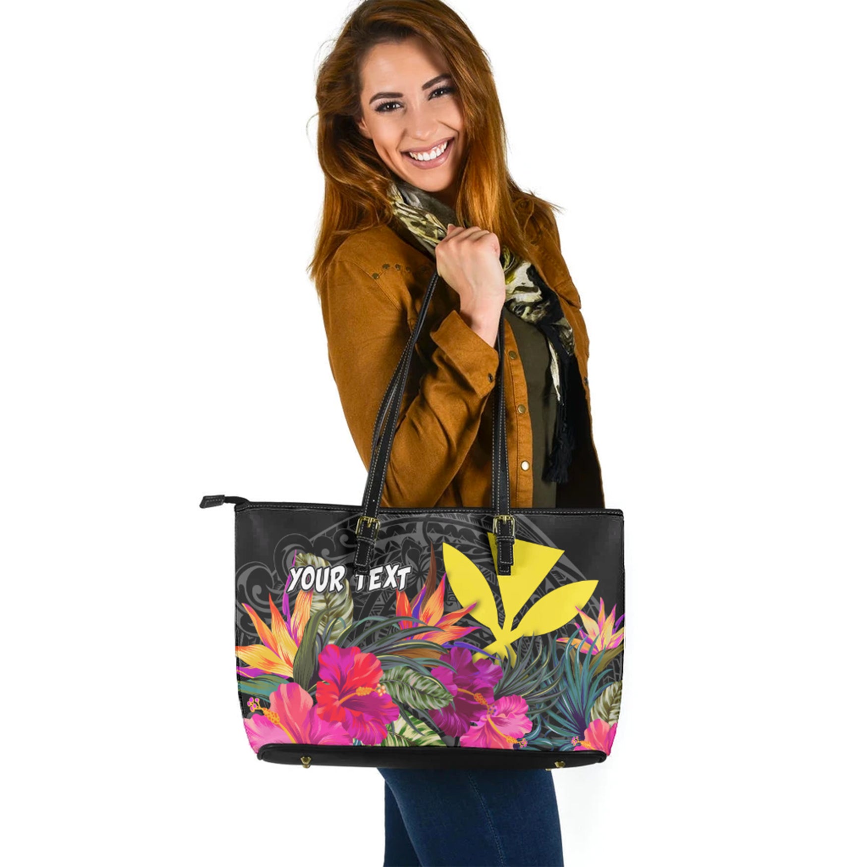 Hawaii Custom Personalised Leather Tote Polynesian Hibiscus Pattern