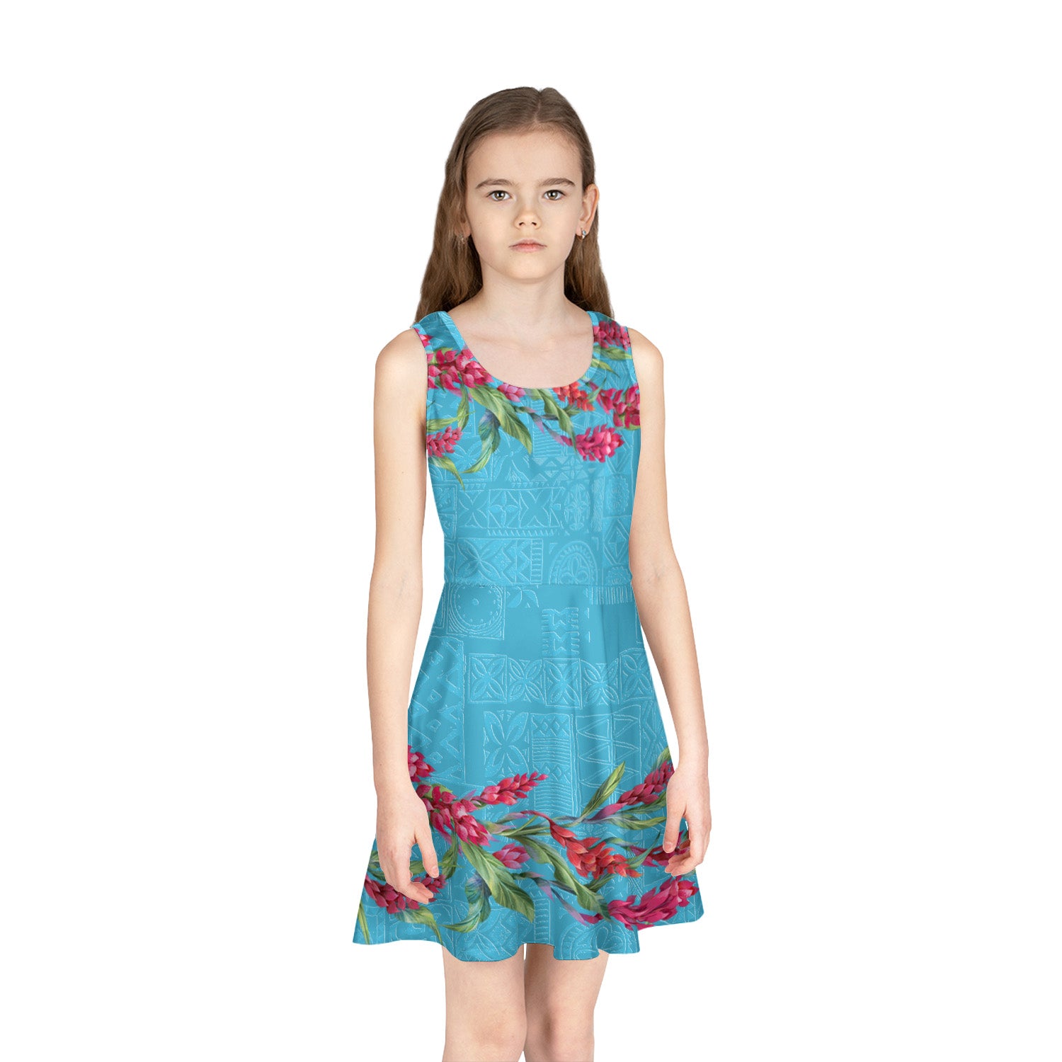 Hawaii Girls Sleeveless Sundress Ginger Flowers Blue Version