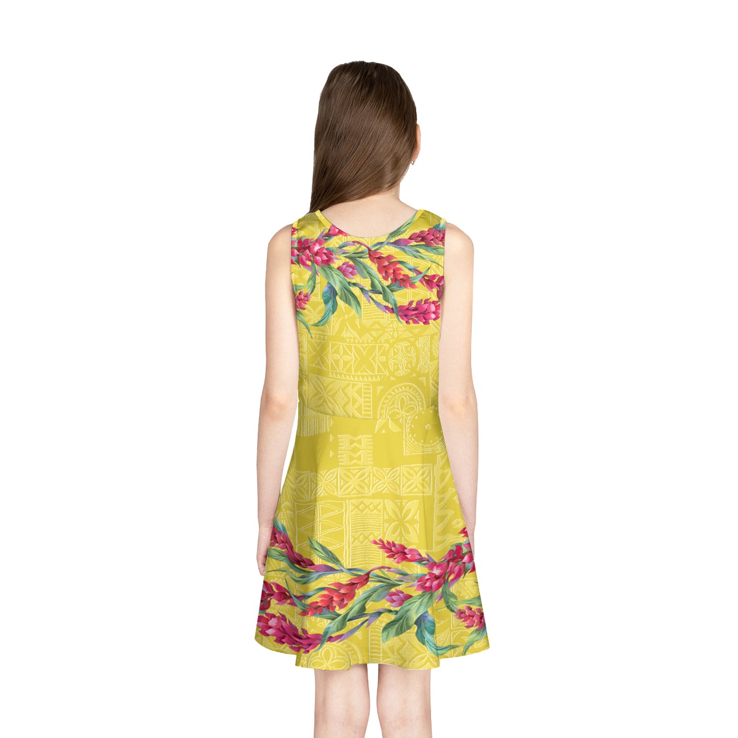 Hawaii Girls Sleeveless Sundress Ginger Flowers Yellow Version
