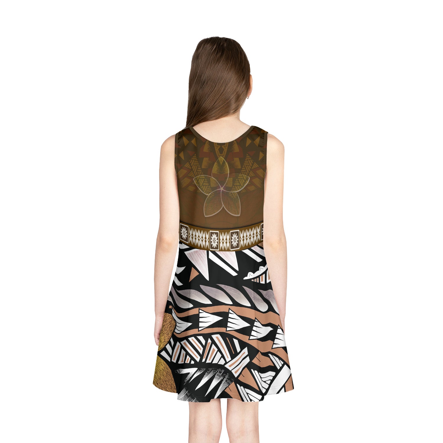 Hawaii Plumeria Polynesian Traditional Patterns Vintage Version Girls Sleeveless Sundress