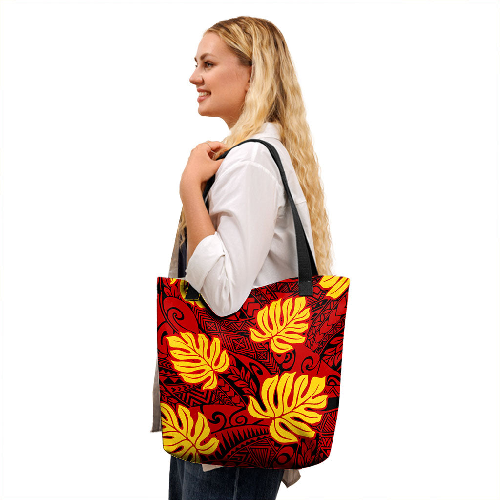 Hawaii Tote Bag Tribal Polynesia Flag Fabric Leaves