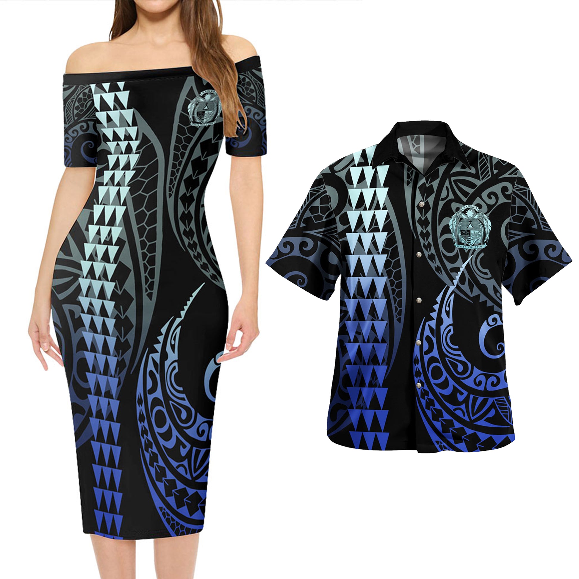 Nauru Combo Short Sleeve Dress And Shirt Kakau Style Gradient Blue