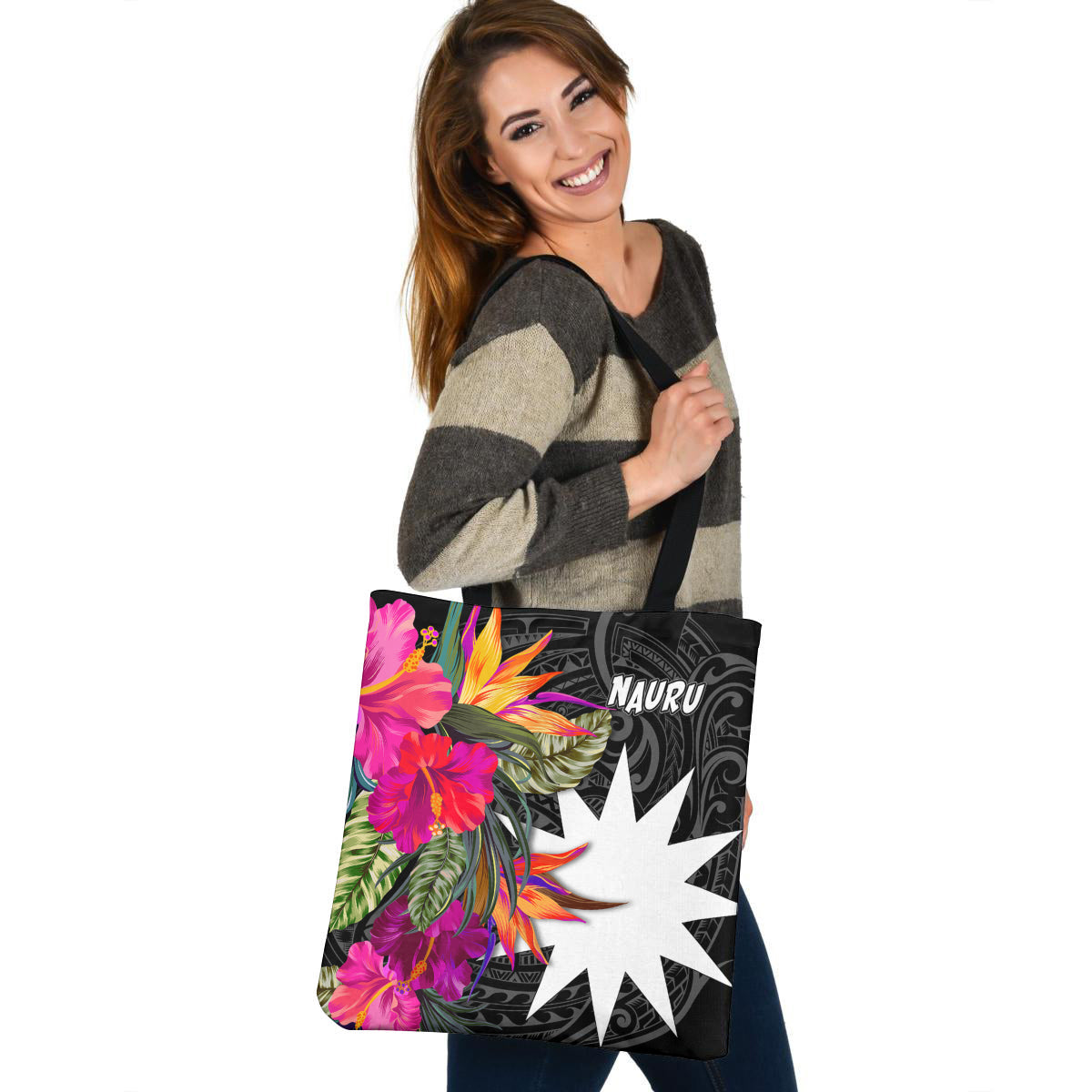 Nauru Custom Personalised Tote Bag Polynesian Hibiscus Pattern