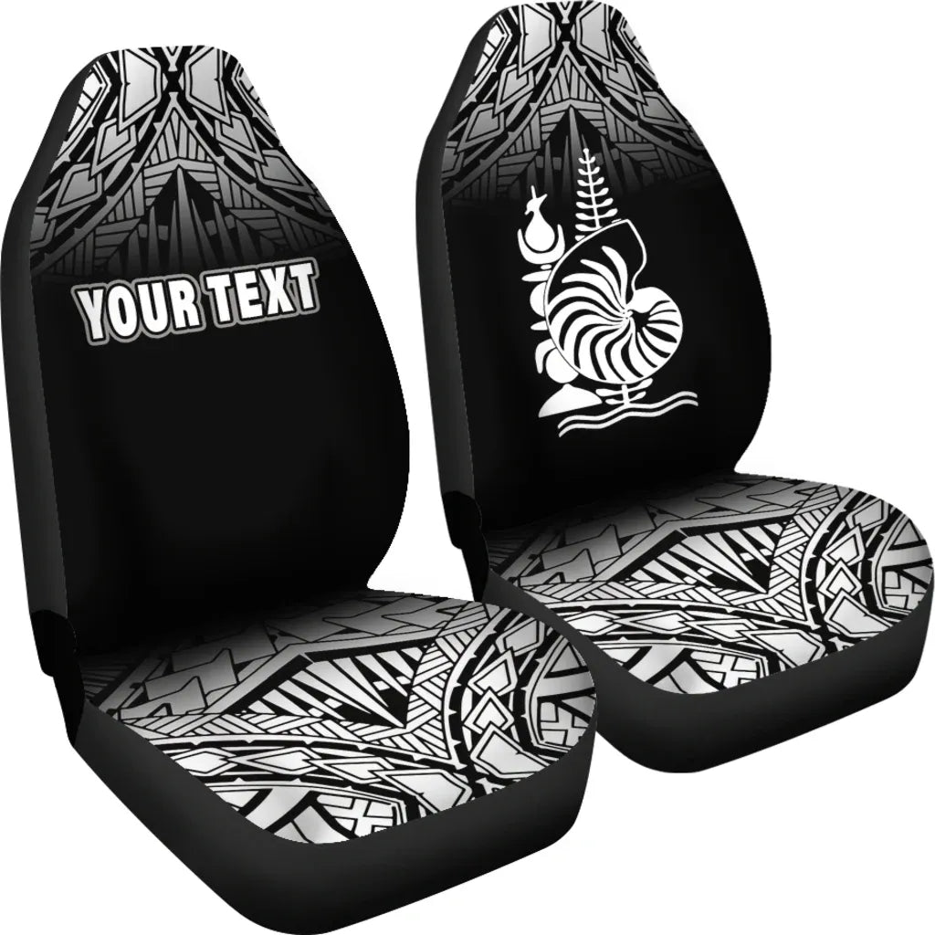 New Caledonia Custom Personalised Car Seat Covers - New Caledonia Coat Of Arms Polynesian Tattoo Fog Black