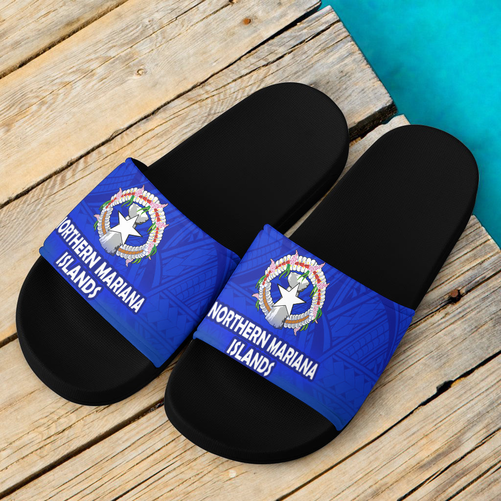 Northern Mariana Islands Flag Color With Traditional Patterns Slide Sandals