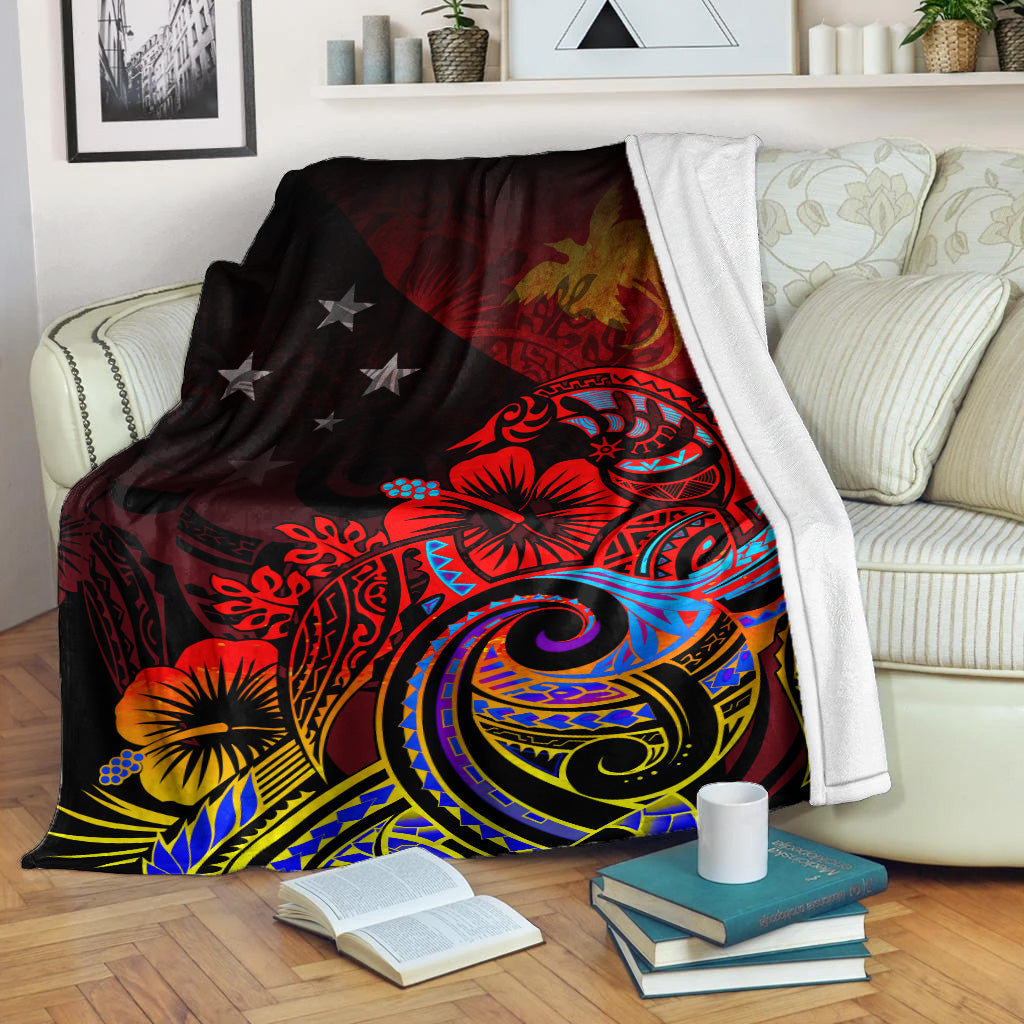 Papua New Guinea Premium Blanket Birds Of Paradise With Flag Color Style