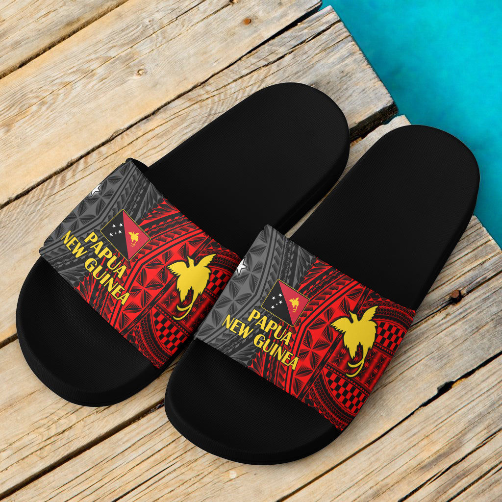 Papua New Guinea Seal With Flag Polynesian Pattern Slide Sandals