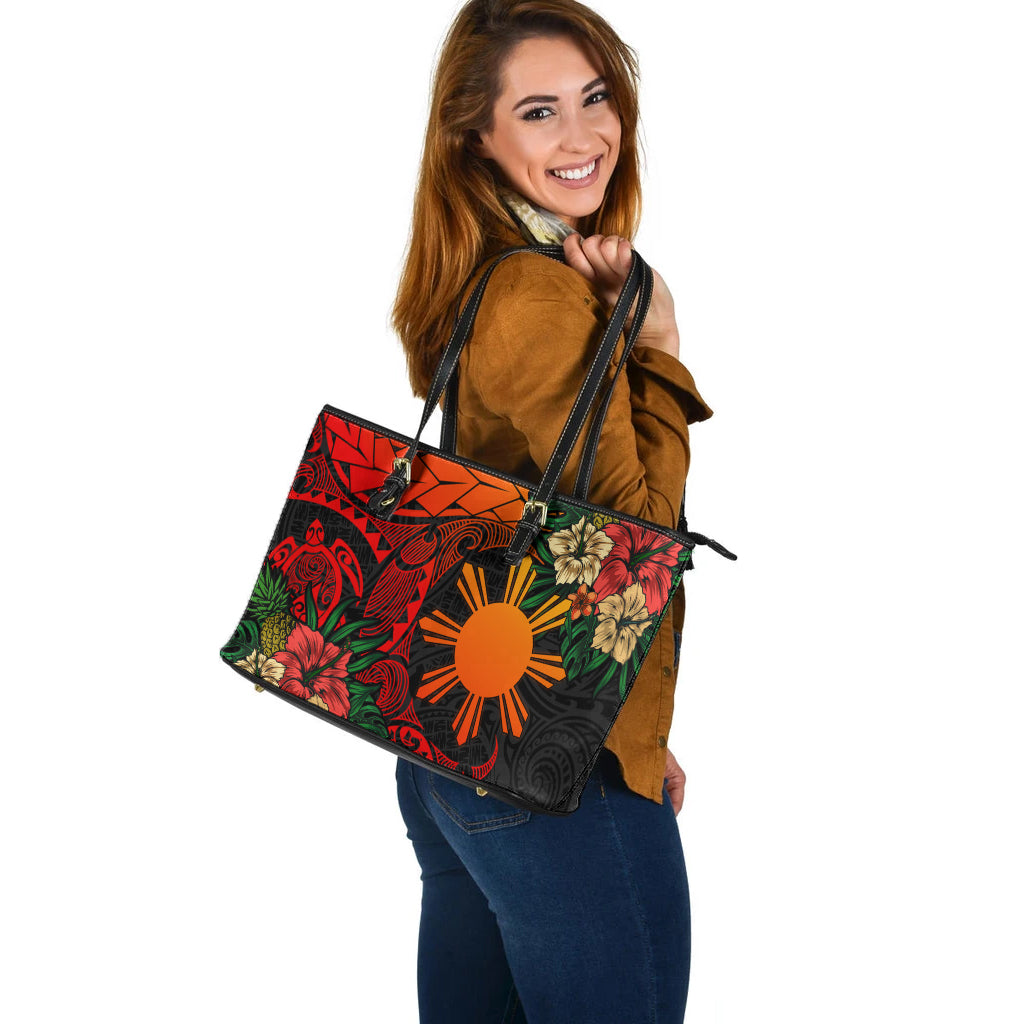 Philippines Leather Tote Bag Polynesian Turtle Tropical