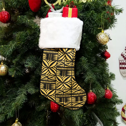 Samoa Christmas Stocking Design Stretch Print Fabric Gold
