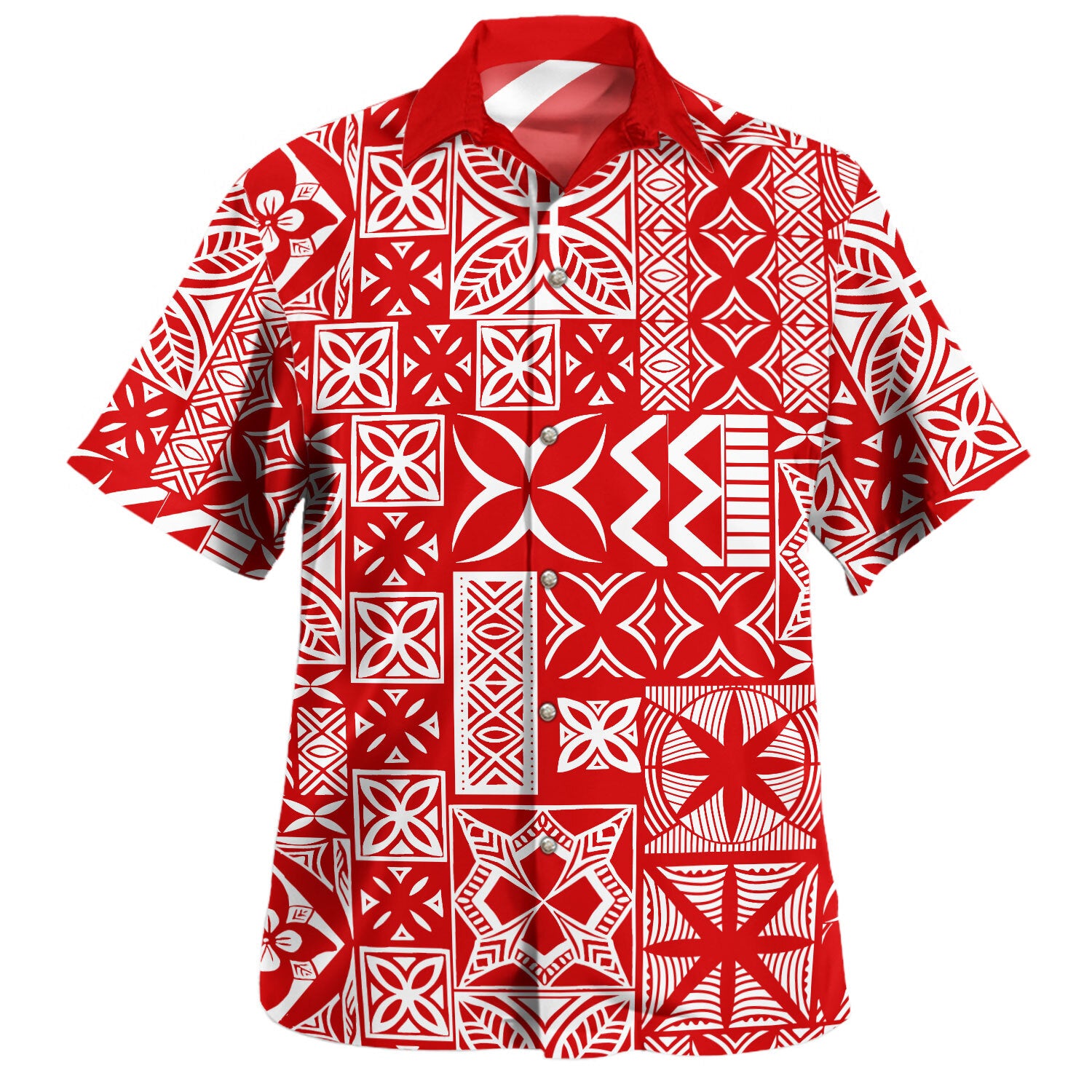 Samoa Combo Puletasi And Shirt Tapa Design Dobby Fabric Red