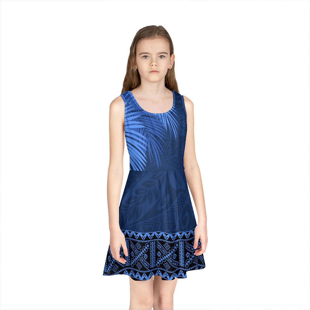Samoa Girls Sleeveless Sundress Polynesian Fabric Leaves