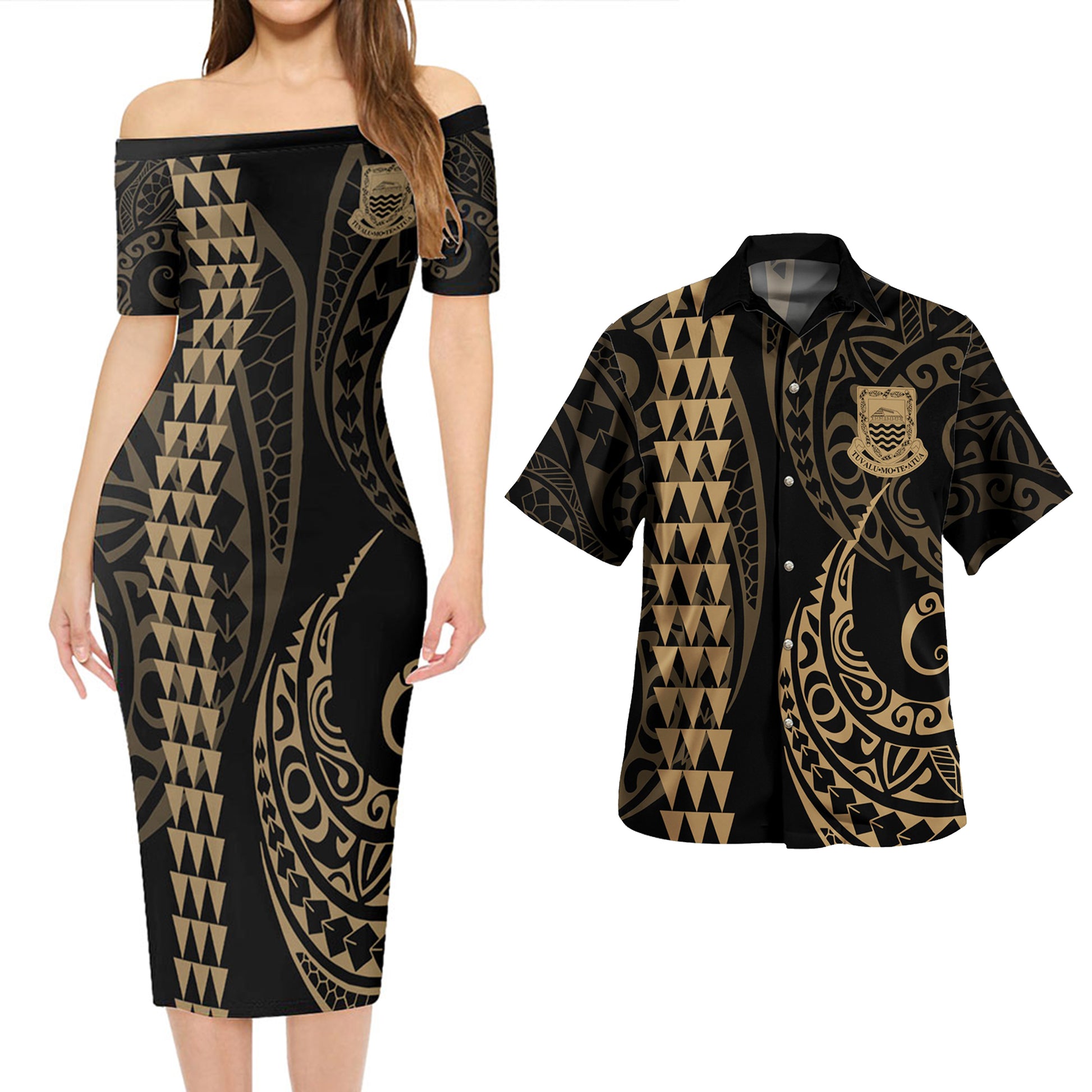 Tuvalu Combo Short Sleeve Dress And Shirt Kakau Style Gold
