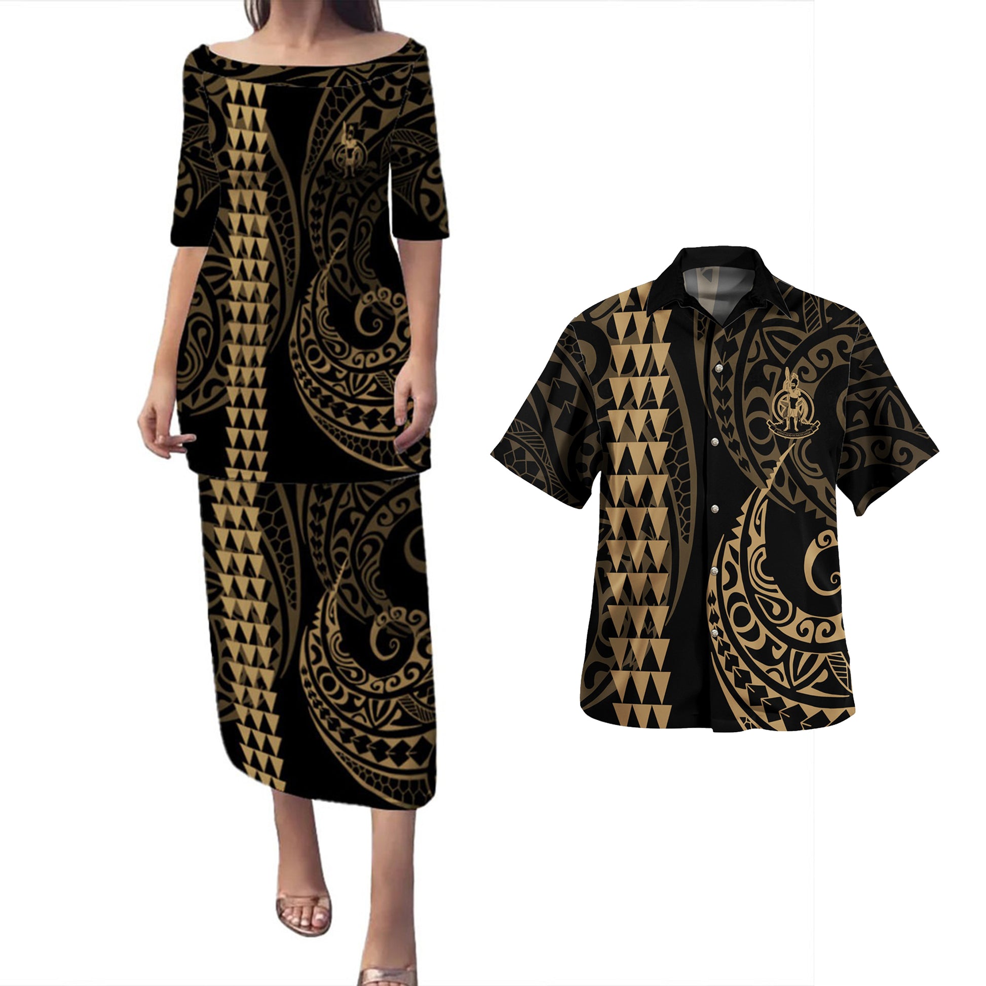 Vanuatu Combo Puletasi And Shirt Kakau Style Gold