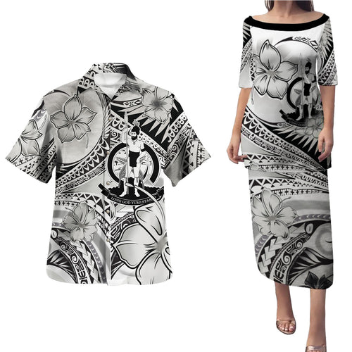 Vanuatu Combo Puletasi And Shirt Polynesian Tribal Waves Patterns Hibiscus Flowers