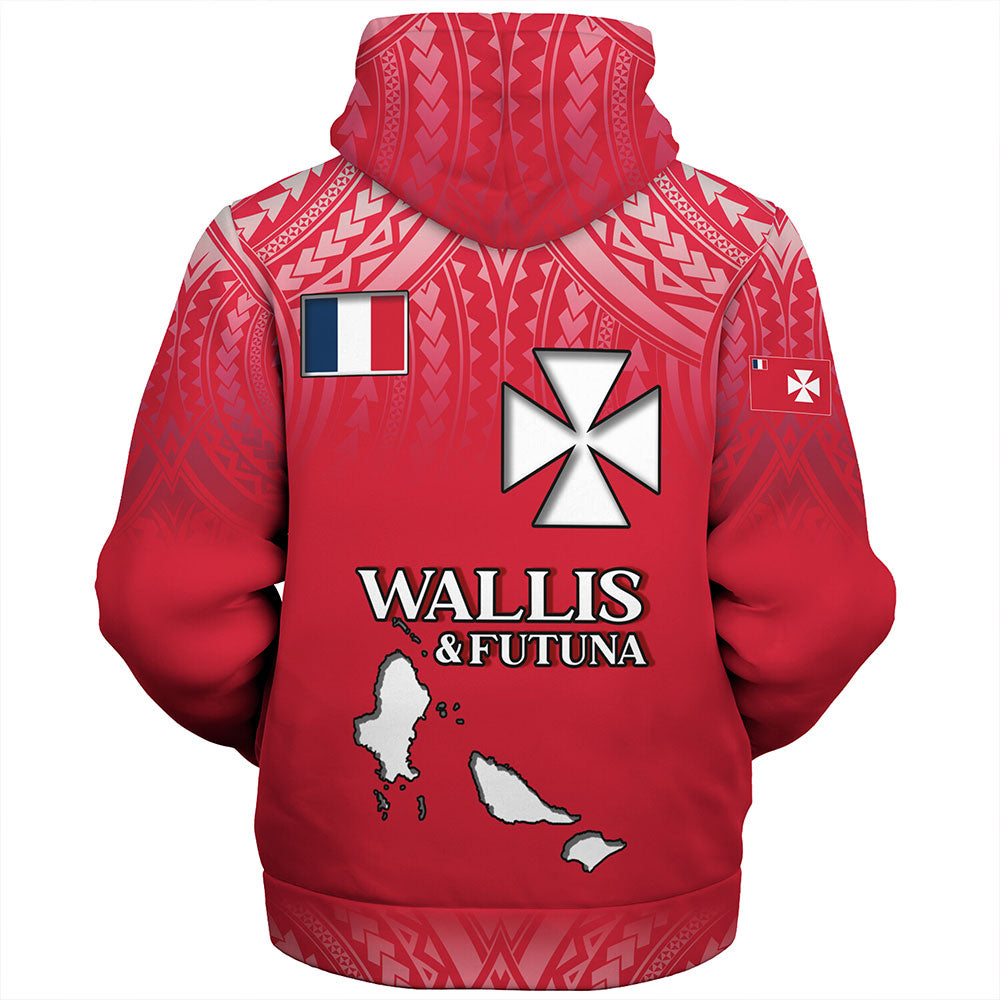 Wallis And Futuna Sherpa Hoodie Flag Color With Traditional Patterns