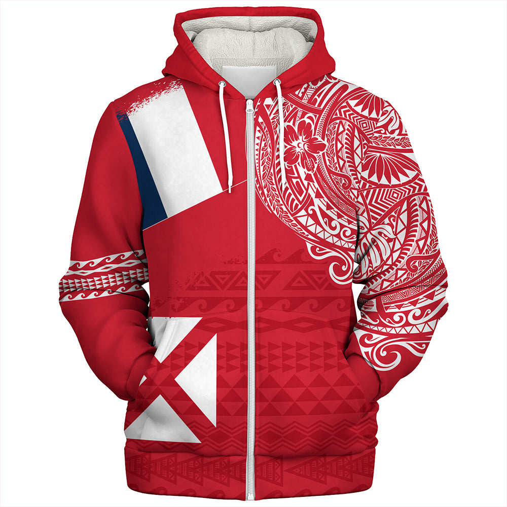 Wallis And Futuna Sherpa Hoodie Polynesian Flag With Coat Of Arms