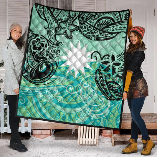 Nauru Polynesian Premium Quilt - Turtle With Blooming Hibiscus Reggae
