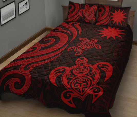 Nauru Quilt Bed Set - Nauru Coat Of Arms & Polynesian Red Tattoo Style
