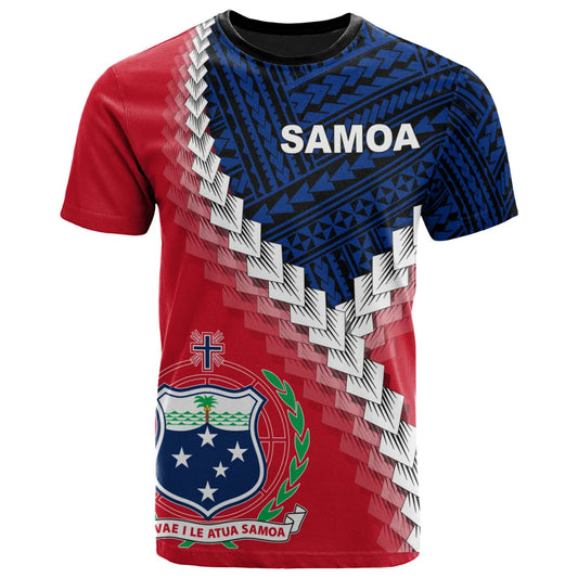 (KID) Samoa T-Shirt - Samoa Coat Of Arms With Polynesian Tattoo Flag Style