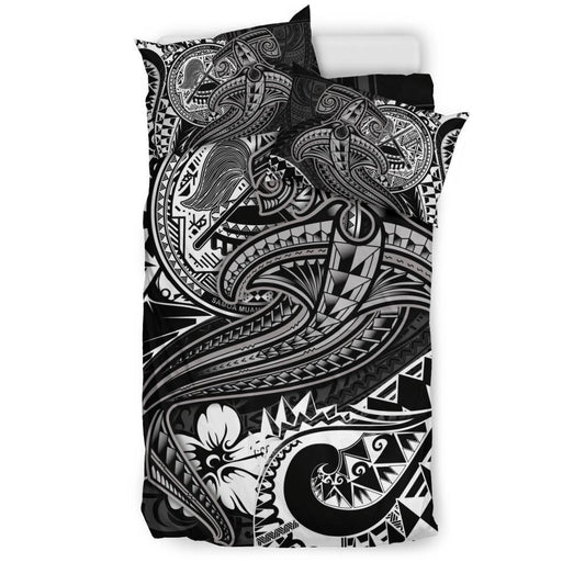 American Samoa Bedding Set - White Shark Polynesian Tattoo