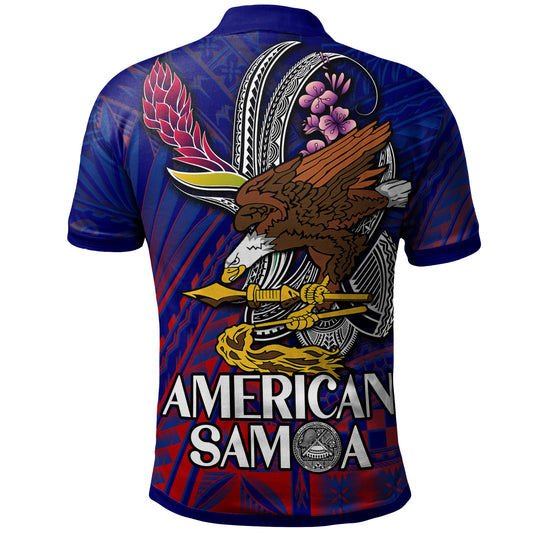 American Samoa Polo Shirt - Custom Seal With National Flowers Polynesian Patterns