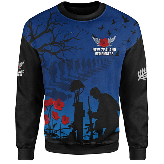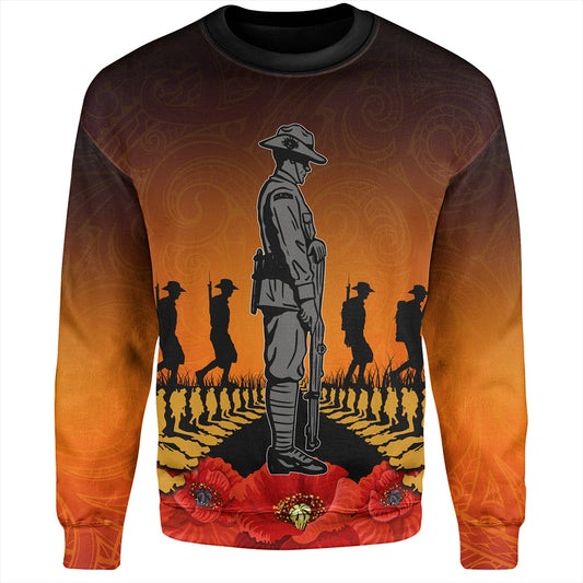 New Zealand Sweatshirt Anzac Army And Maori Silver Fern Poppy Sunset Style
