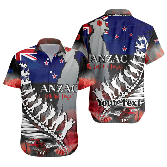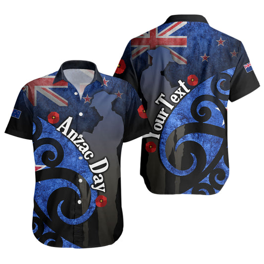 New Zealand Custom Personalised Short Sleeve Shirt Anzac Day Flag Maori Patterns