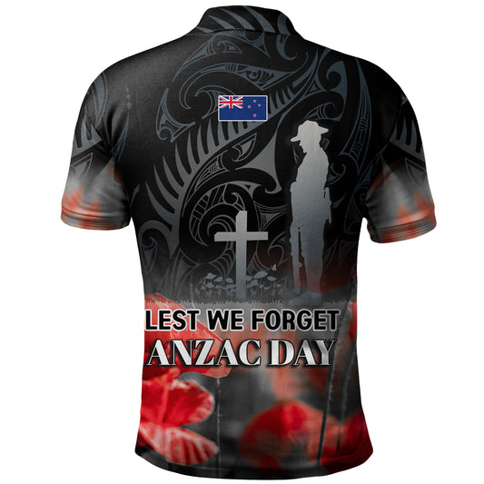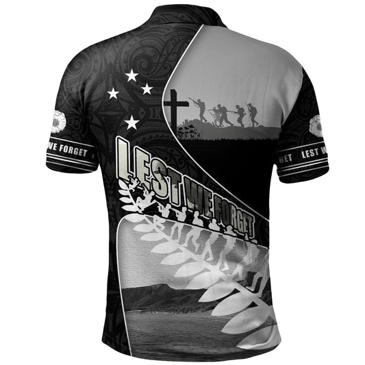 New Zealand Polo Shirt Maori Tribal Silver Fern Lest We Forget Solider