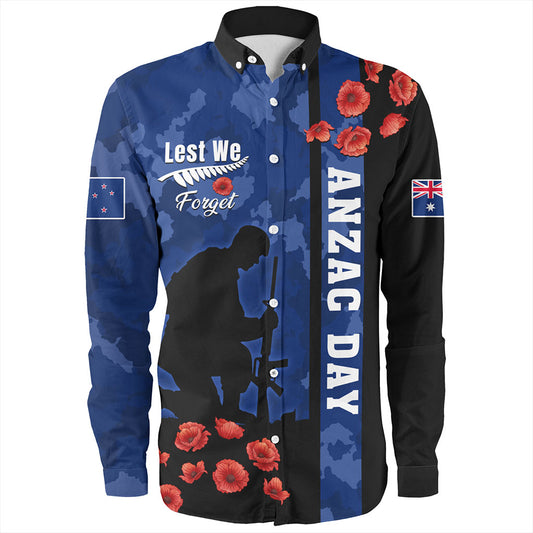New Zealand Long Sleeve Shirt Anzac Day Lest We Forget Military Camouflage Simple Style