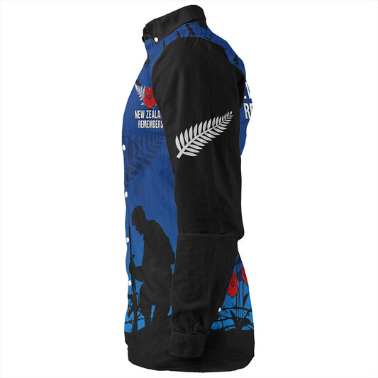 New Zealand Long Sleeve Shirt Custom Anzac Day Lest We Forget Silver Fern